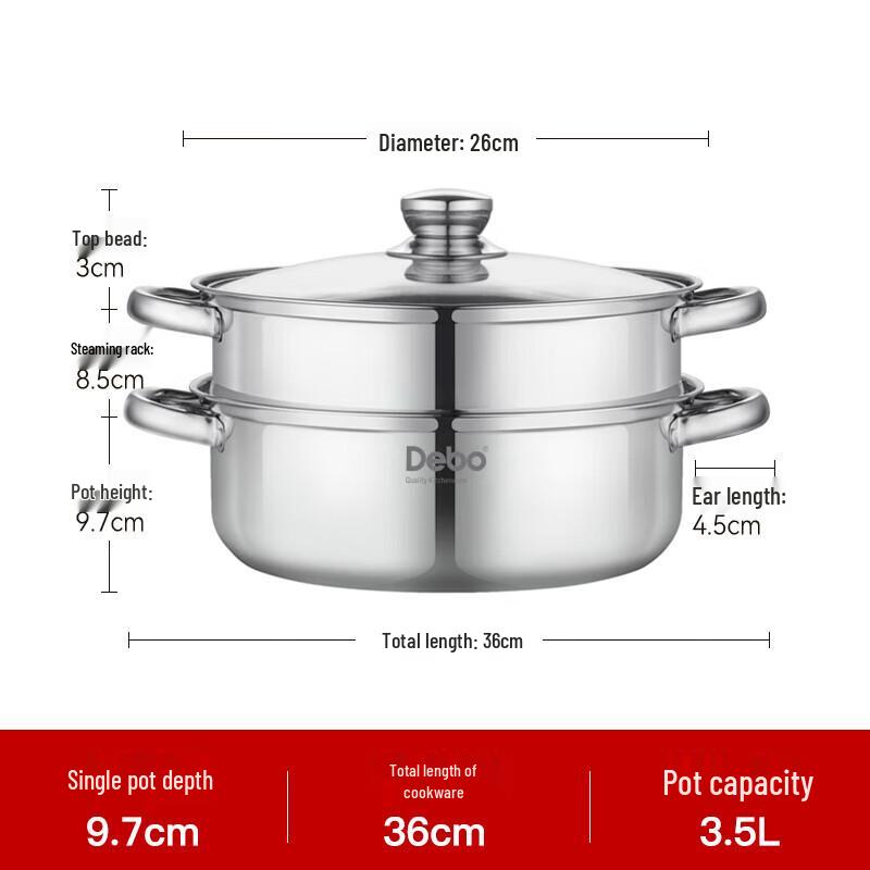 DeBo Laina 304 Edelstahl Suppentopf & Doppelschicht Dampfgarer Set