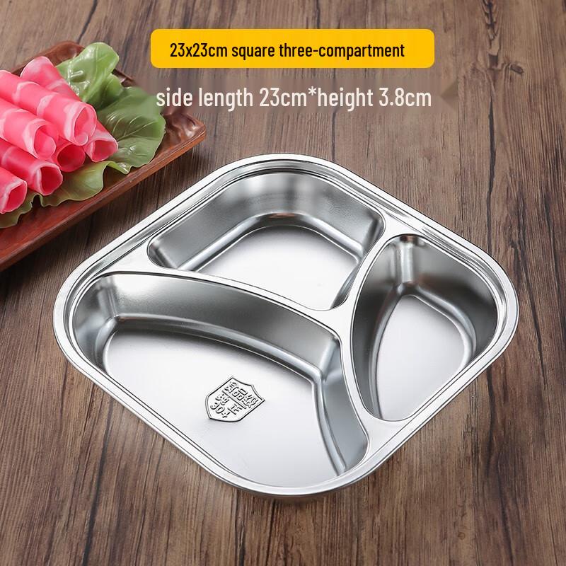 Food Grade 304 Stainless Steel Square Divided Dinner Plate