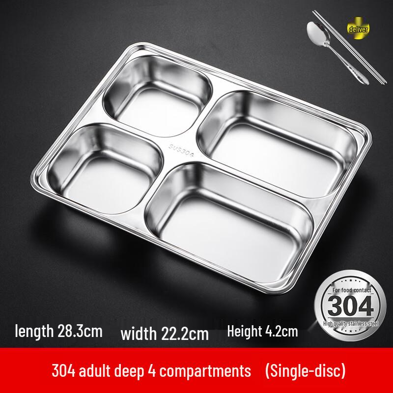 304 Stainless Steel Rectangular Divided Lunch Tray