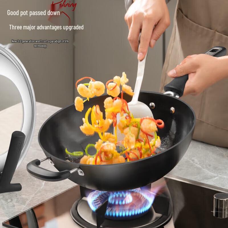 ASD 34cm Flat Bottom Cast Iron Wok