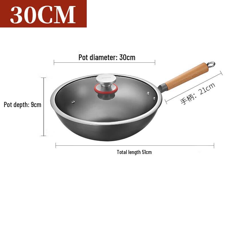 Oumeida Echter Gusseisen-Wok aus Edelstahl, 30 cm