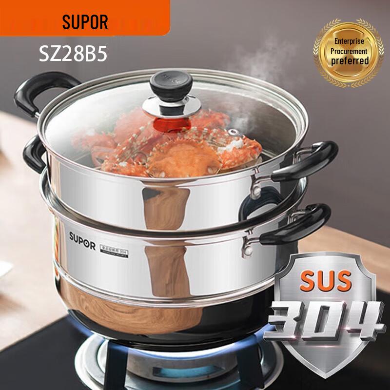 Supor 304 Edelstahl Doppelschichtdämpfer 28cm