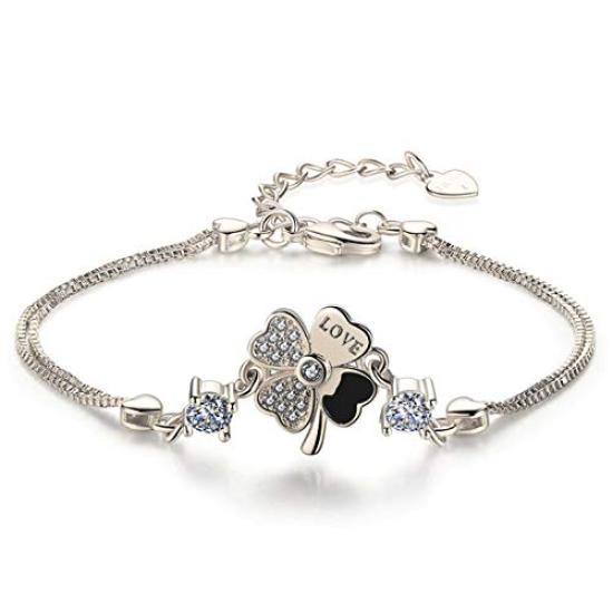 Pearl Specialty Grade 5 Clover Diamond Bracelet with Sparkling Large CZ Cubic and Wedding Love Heart Bracelet in White 925 Gift Wrapping Available on