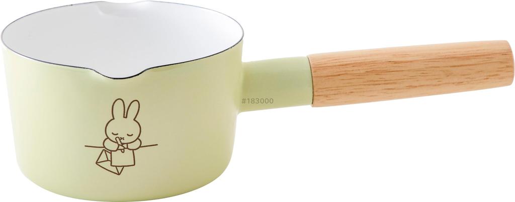 Fuji Emaille Miffy Pastell Milchtopf, 12cm, Induktionskochgeschirr geeignet, Hellgrün, Buchstabe, Miffy Emaille
