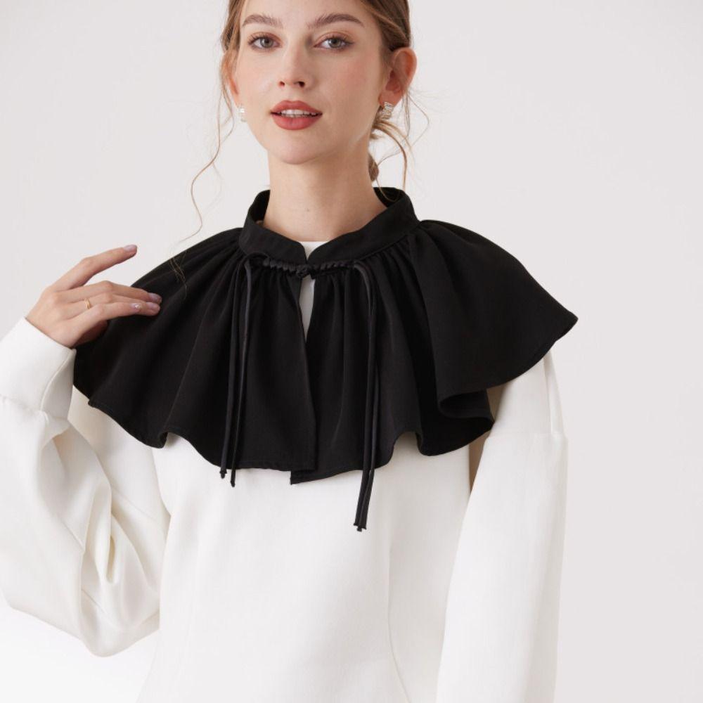 Ribbon Decoration Shawl Detachable Collar White Blouse Shoulders Fake Collar Ruffled Shawl Women