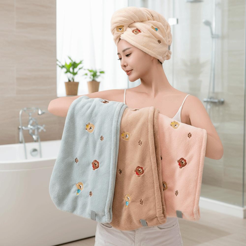 Thickened Head Wrap Cartoon Hair Drying Cap Comfortable Shower Cap Women