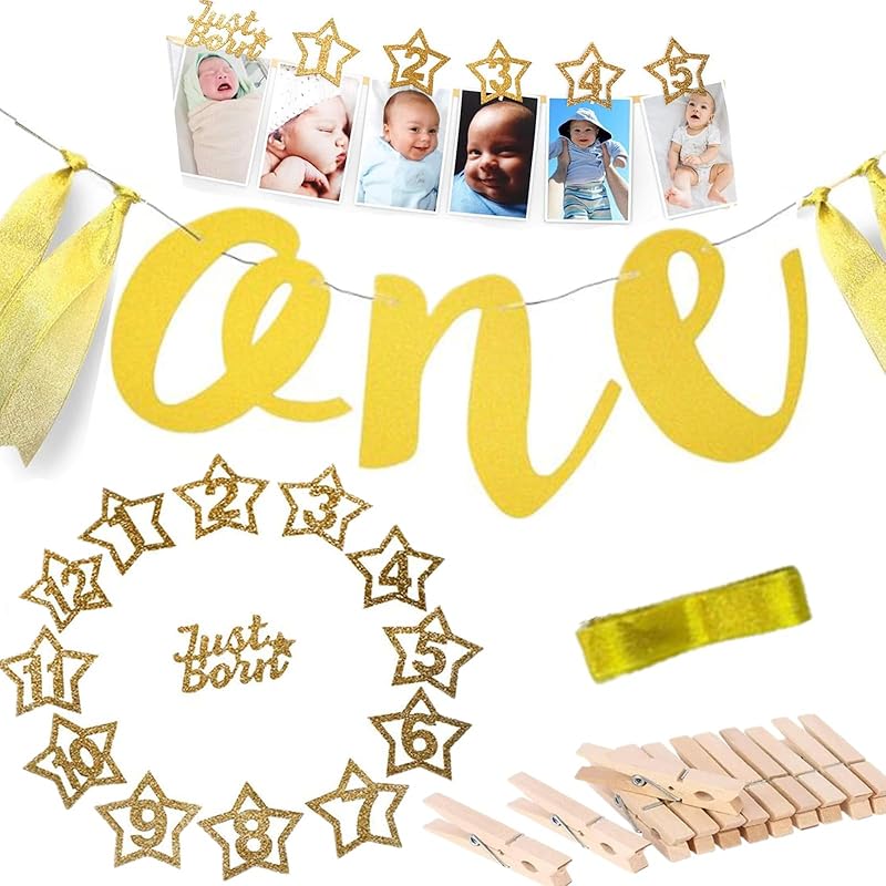 LIKENNY 1. Geburtstag Girlande Dekoration Set, ONE/Stern, 2 Arten, Baby Mädchen/Junge, HAPPY BIRTHADAY, Fotoshooting, Gedenkfeier, Wand