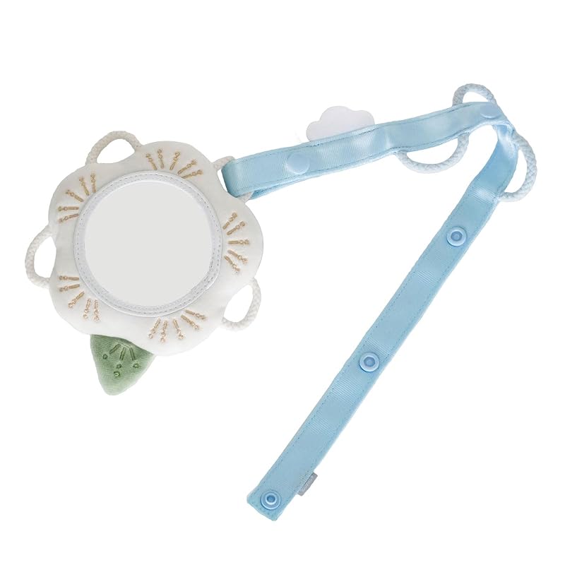 Shaol Set with Ring Mirror and Ring Strap (Plum and Blue / 0-Year-Old Baby) - Educational Toy for Newborns, Stroller, Playpen, Gentle Bell Sound,