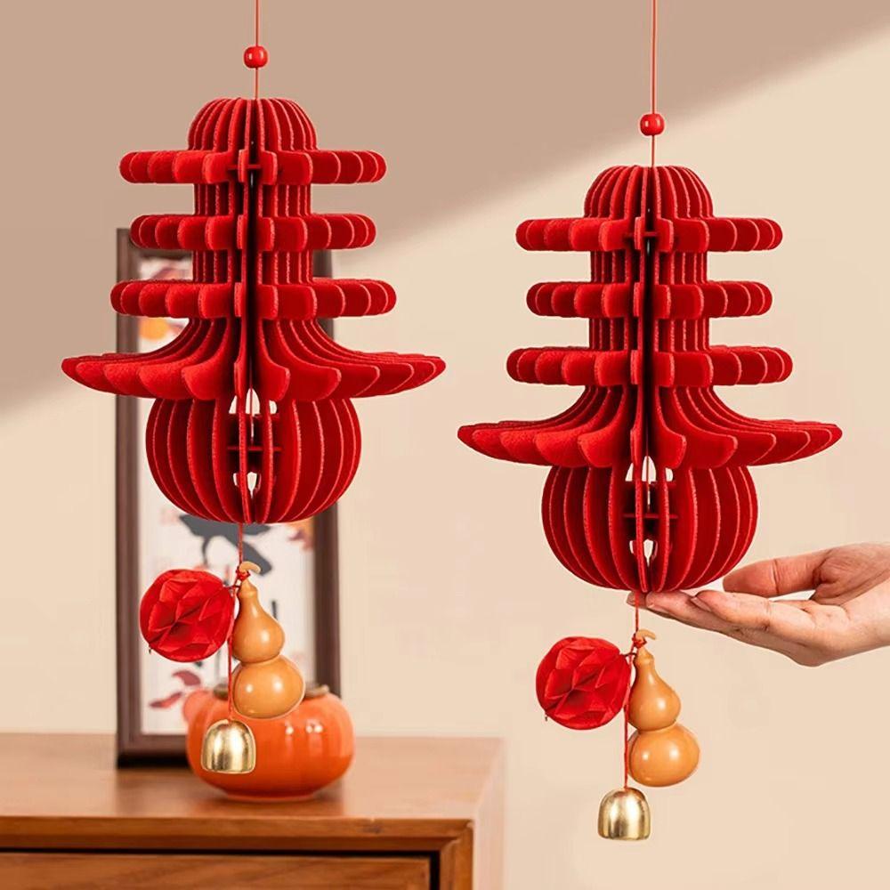 Gourds Shape New Year Decoration Red Felt Gold Bell Greeting 3D Felt Pendant Shop Decoration