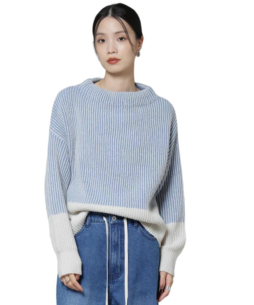 Nano Universe Shadow Stripe Knit Size Size Pullover, Women's, F, 110, Blue, 673-5222303