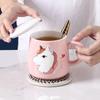 Einhorn Tasse mit Deckel Löffel Super Süß Niedlich Cartoon Keramiktasse Große Kapazität Haushalt Kreative Wassertasse