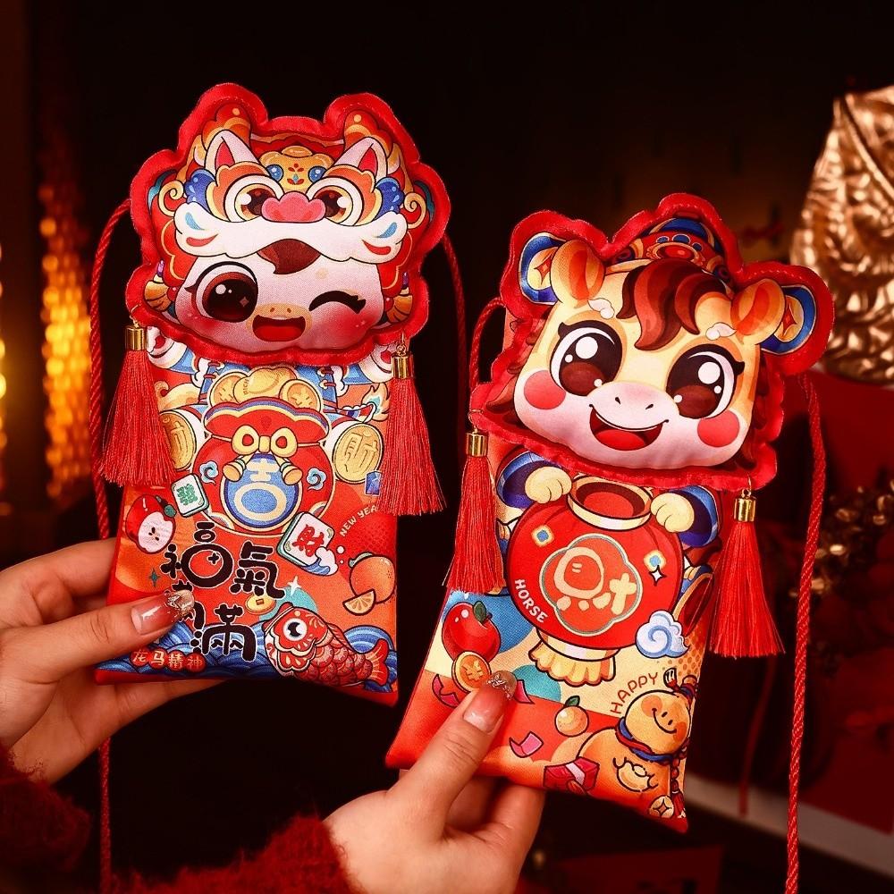 With shoulder straps New Year's Blessing Bag Cartoon Red Envelope 2026 Year of the Horse