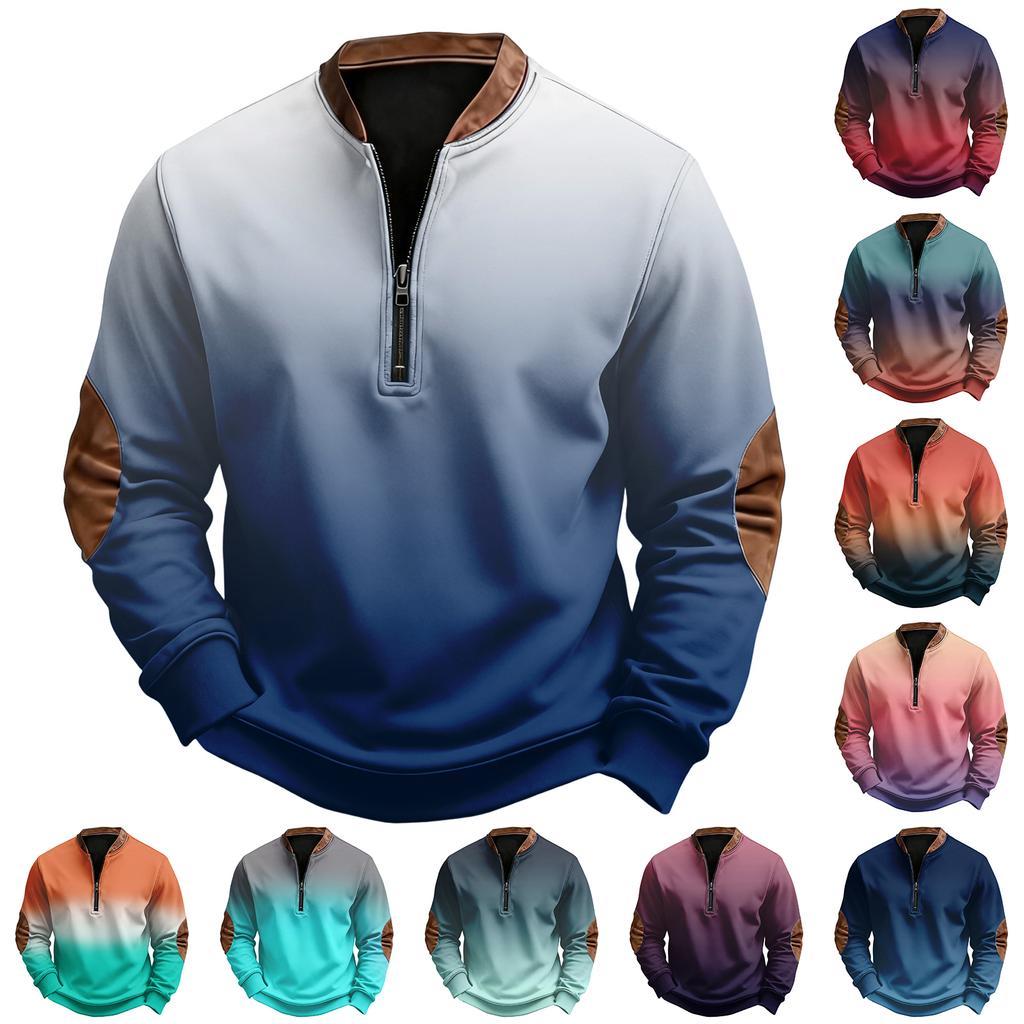 Men's Casual, Trendy, Retro American Gradient Printed Round,neck Long,sleeved Half,pull One,piece Sweatshirt