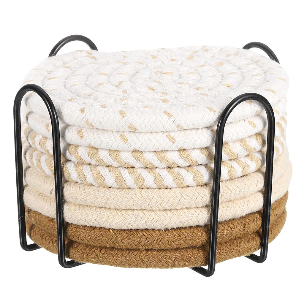 Uxcell 8-teiliges 4,3 Zoll dickes Getränkeuntersetzer-Set, hitzebeständiges Topfuntersetzer-Set mit Halter für Küchenarbeitsplatten, Tische und Heimdekoration, heiße Plattenpolster (Braun)