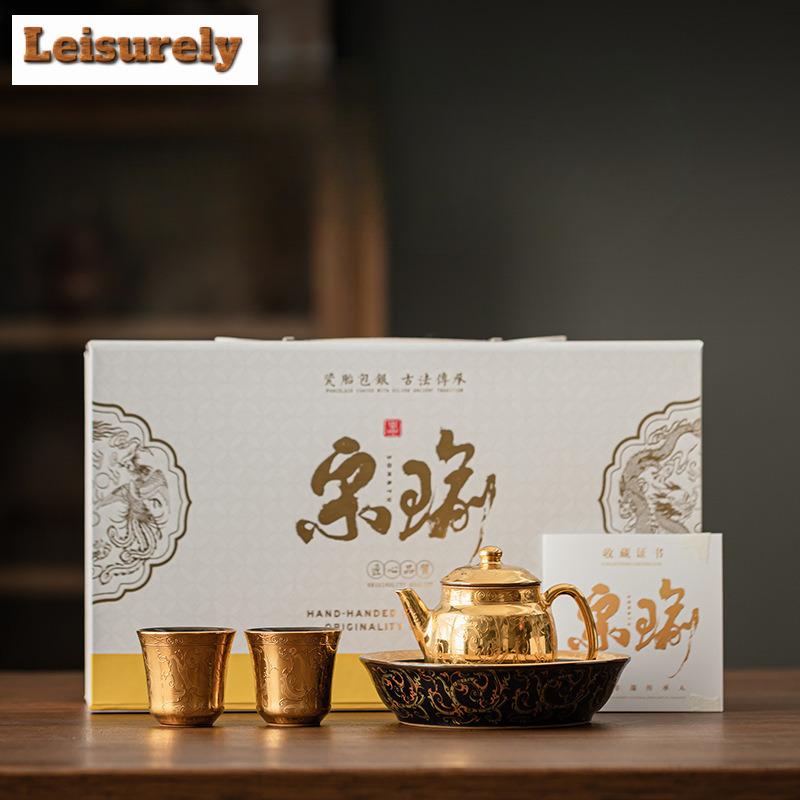Gilded Chi Long Pattern Tea Set Complete Set Vintage Tea Ceremony Set Tea Maker Teapot And Tea Cup Set Cafes Supplies Ornaments