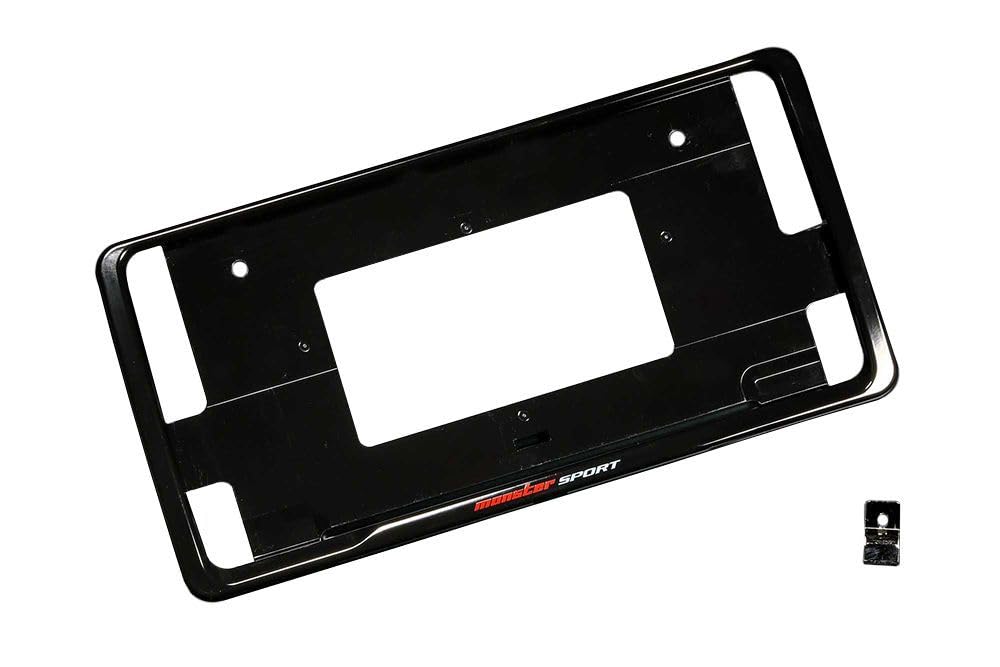 Available in two colors: Gloss Black, which makes the license plate appear smaller, and Titanium Silver, which features a high-quality plating base. Features a "MONSTER SPORT" logo.