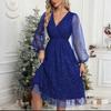 Damen V-Ausschnitt Mesh Langarm Stilvolles Sexy Kleid