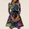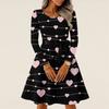 Damen Casual Mode Langarm Vintage Lange Kleider Frühling Valentinstag
