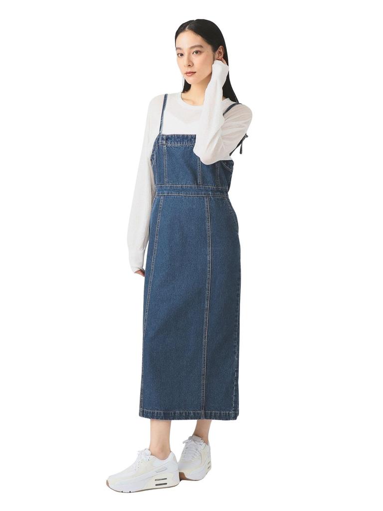 This camisole dress is crafted from thick denim. The beautiful, straight I-line silhouette flatters your figure. The zipper at the back minimizes the casual feel and adds a touch of elegance.