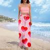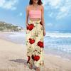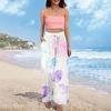 Damen Sommer Boho Palazzo Hose Hohe Taille Weites Bein Druck Freizeithose Mit Taschen
