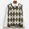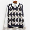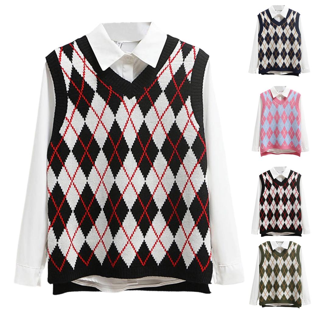 Damenmode Diamant-Rautenmuster Ärmellos V-Ausschnitt Locker Studenten College Strickweste