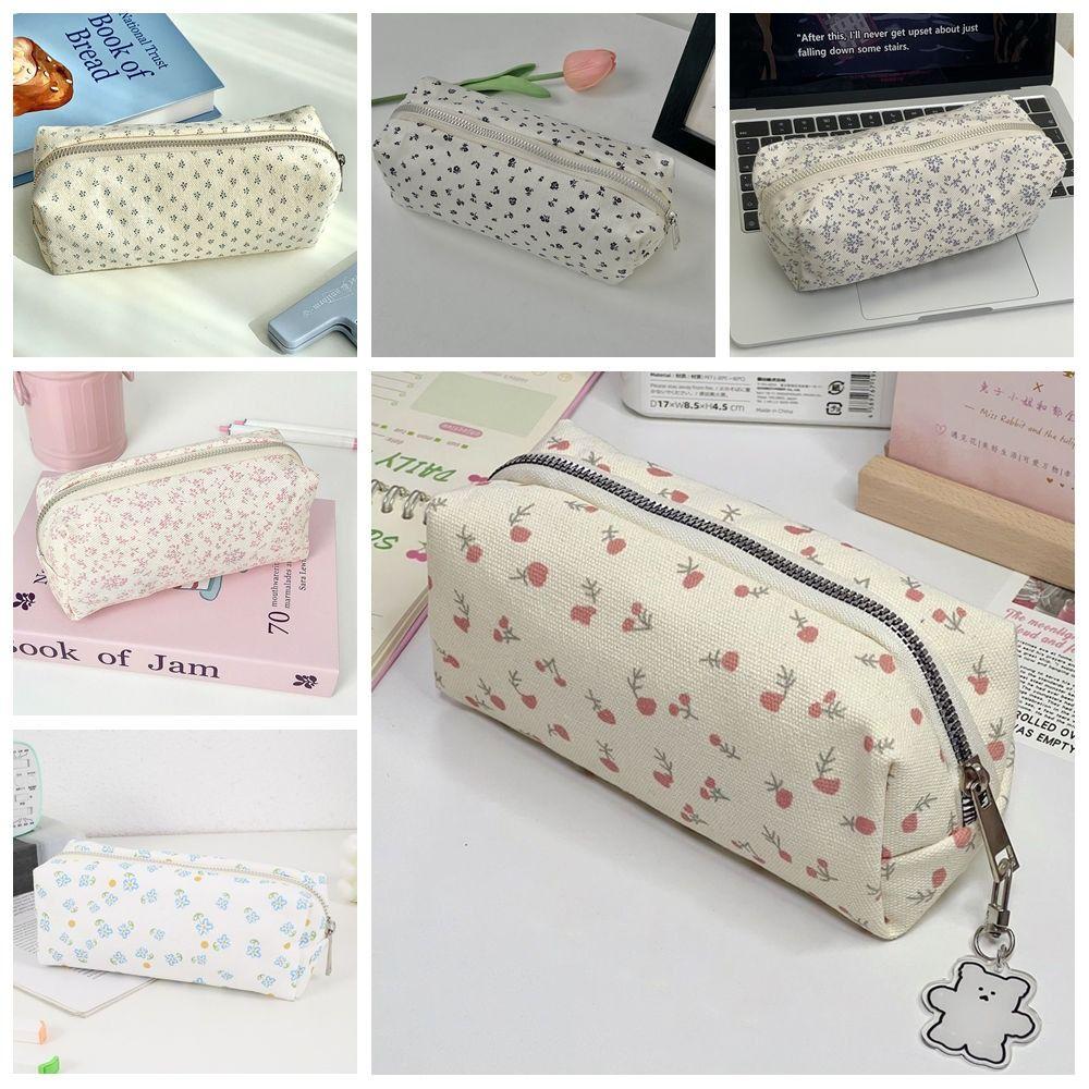 Cute Floral Print Pen Bag Large Capacity Multifunctional Stationery Bag Pencil Case Gift