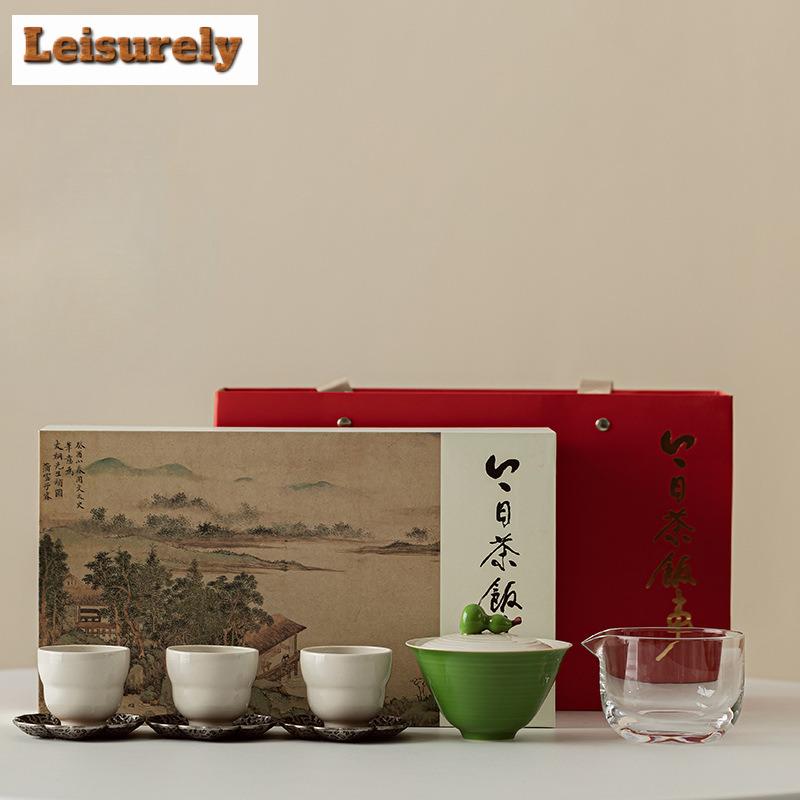 Retro Plant Ash Gourd Fortune Ceramic Tea Set Complete Set Japanese Tea Ceremony Set Green Teapot And Tea Cup Set Drinkware Gift