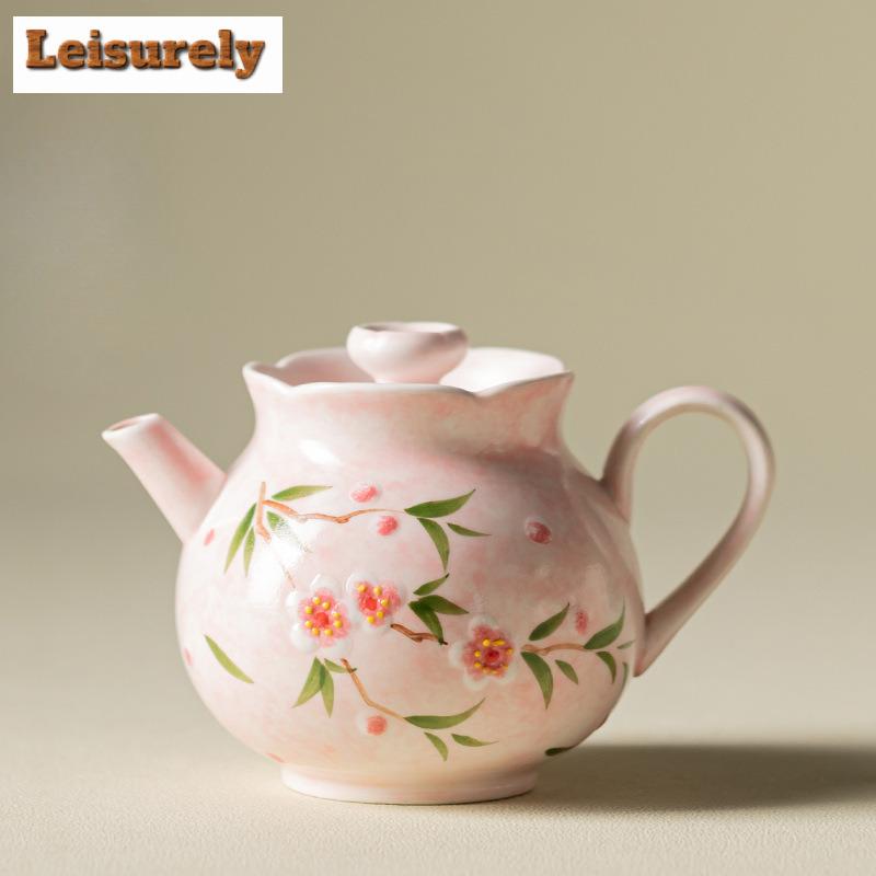 200ml handbemalte Pfirsichblütenknospen Teekanne Japanischer Tee-Aufgusskessel Teekessel mit Kugelöffnung Puer Trinkgeschirr Handwerkliches Geschenk