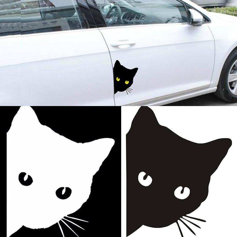 Fuuny Motorrad-Autoaufkleber, Katze, die späht, Katzenaufkleber, Aufkleber, schwarz/weiß, Auto-Styling, Vinyl-Aufkleber, Dekoration, Auto, Autozubehör