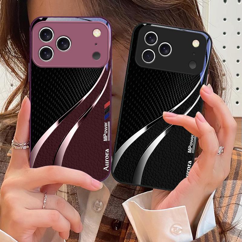 Hochwertige Ledertextur Für iPhone 17 Air 16 E 15 14 13 Plus 12 mini 11 17 Pro Max XR Xs Max 16E 7 8 Gehärtetes Glas Handyhülle