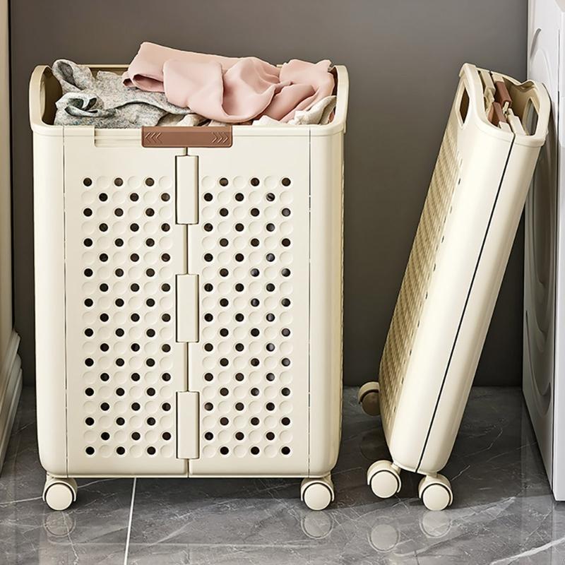 Multiple Sized Laundry Basket With Brakes On Sturdy PP Materials Portable for Space Saving and Easy Transport