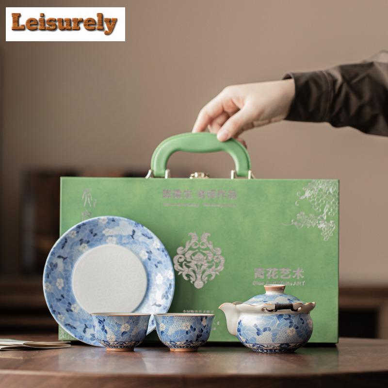 Blau-Weiß Ru-Ofen Porzellan Teegeschirr Komplettes Set Handgefertigtes Teezeremonie Set Teezubereitung Teekanne und Teetasse Set Teegeschirr Handwerk
