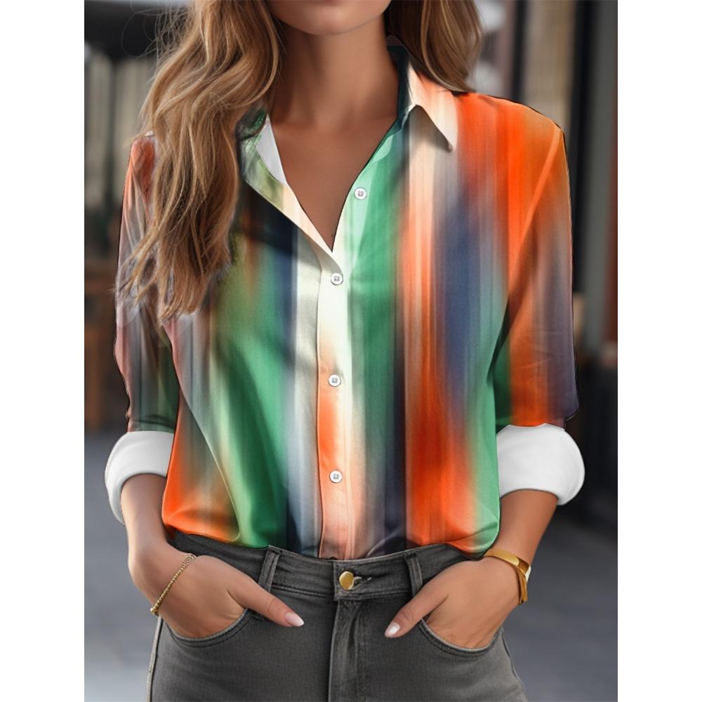 Damen Mode Color Block Knöpfe Bluse Reverskragen Bluse Damen Langarmshirts Damenbekleidung Damenbekleidung