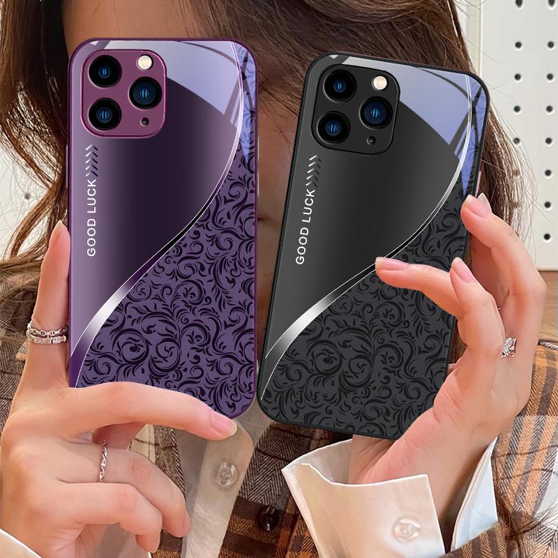 Muster Farbverlauf Schwarz Lila Für IPhone 16 Pro Max 15 Pro 14 13 12 Mini 11 XS Max XR 7 8 Plus SE 2022 Gehärtetes Glas Handyhülle