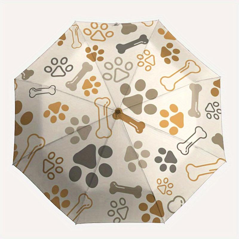 1 Stück Pfotenabdruck Knochen Automatischer Öffnungs-/Schließschirm mit Ein-Knopf-Bedienung, Winddichtes Design Leichter Tragbarer Schirm für Damen & Herren6098