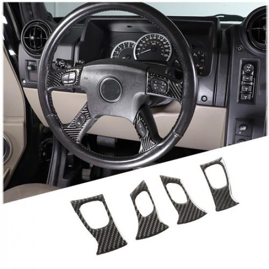 Carbon fiber Steering Wheel Button Cover Trim Sticker For Hummer H2 2003-2007