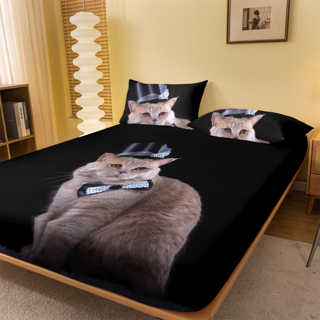 1 Cartoon Niedliches Tier Katze Digital Bedrucktes Mattiertes Spannbettlaken, Schlafzimmer Bedruckte Bettdecke, Bettwäsche(Kein Kissenbezug)