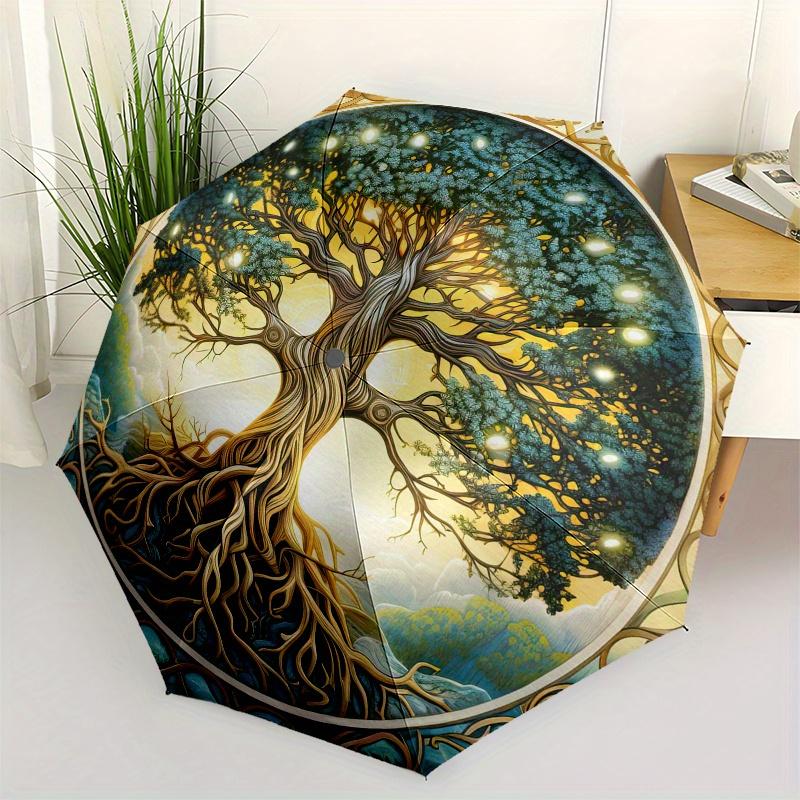 Lebensbaum Regenschirm, Tragbarer 3-fach Kompakter Regenschirm für Herren & Damen, S65