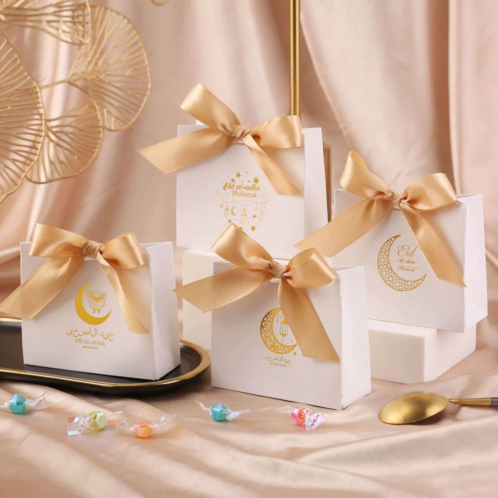10 Stück Papier Eid Mubarak Geschenkbox Seidenband Snacks Geschenkbox Kreative Süßigkeitentaschen Eid Al Adha