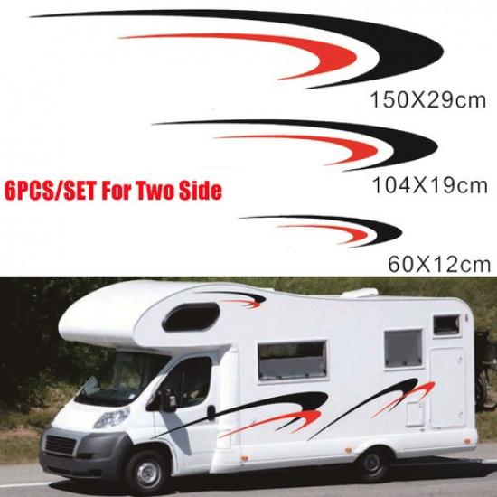 Black+Red Stripes Decal Vinyl Stickers For Camper RV Trailer Two Side Body Decor