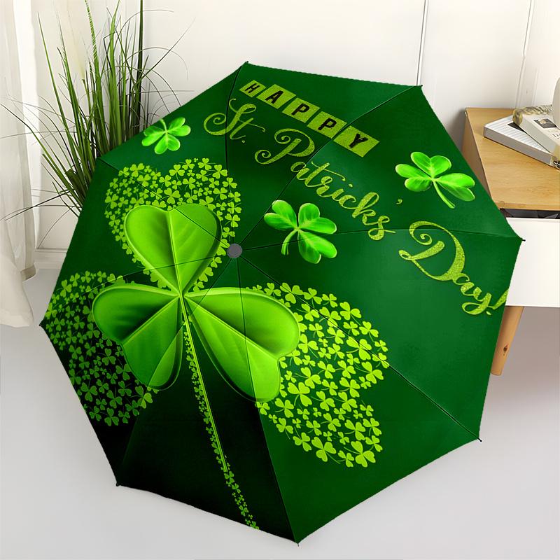 Clover, St. Patrick's Day Themed Automatic Opening and Closing Umbrella, Portable Tri fold Small Umbrella for Men and Women,Gift0725054z