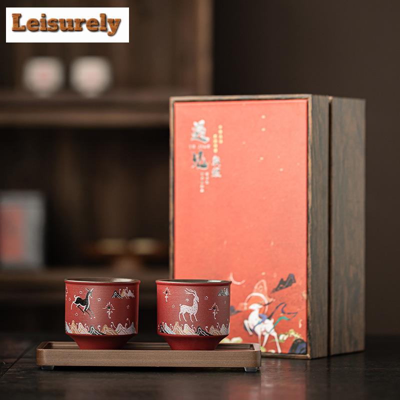 2pc/set Forbidden City Teacup Luxury Tea Bowl Beautiful Tea Cup Tea-tasting Personal Cup Chazhan Master Cups Wedding Gift Box