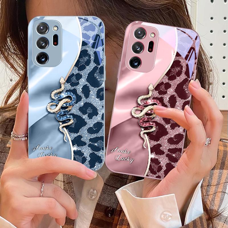 Gefleckte Schlange Rosa Für Samsung Galaxy Note 8 9 10 PRO 20 Ultra A01 02 03 Core 04E 4G 12 13 5G Gehärtetes Glas Handyhülle