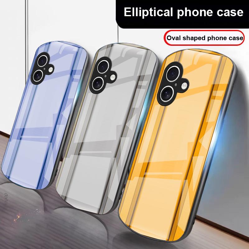 Golden orange border For iPhone 17 16 15 14 13 Plus 12 mini 11 Pro Max XR Xs Max X 7 8 6S 22 20 Elliptical glass phone case