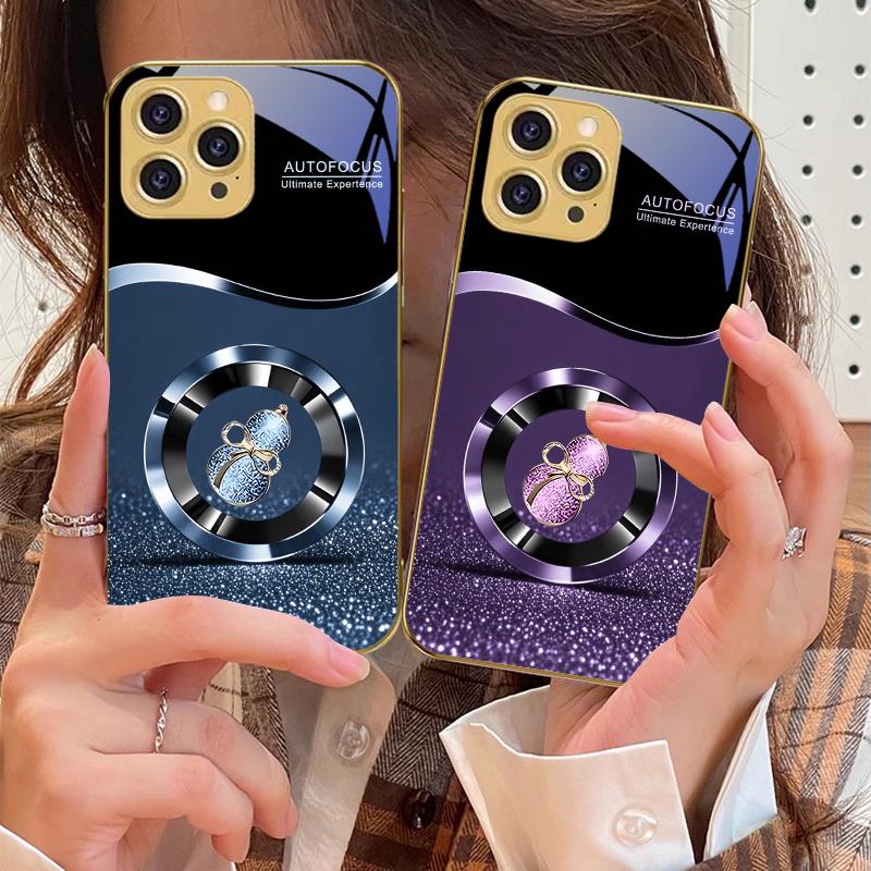Goldene Glückskürbis Hülle für iPhone 16 16Pro Max 15 Pro 14 13 Plus 12 Mini 11Pro Max XS Max XR Goldene gehärtete Glas Handyhülle
