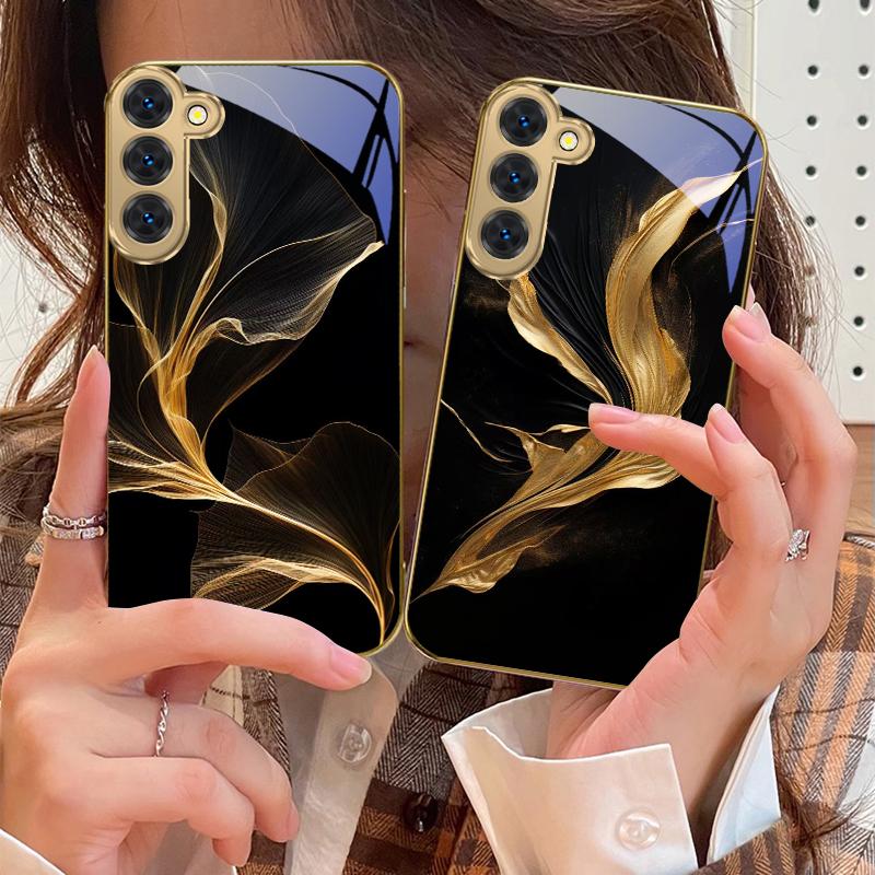 Schwebendes goldenes Band Für Samsung Galaxy S20 FE S21 S22 S23 Plus S24 Ultra 25Ultra S21+ S9+ S22Plus Goldene Glas-Handyhülle
