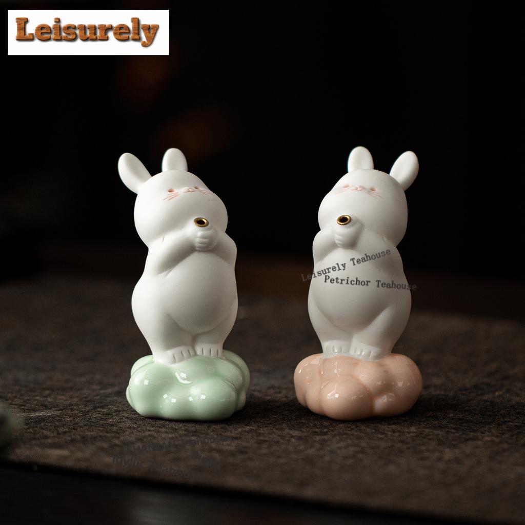 Bean Green Cute Rabbit Incense Holder Water Fountain Decoration Incense Burners Meditation Censer Chinese Tea Set Decoration