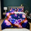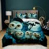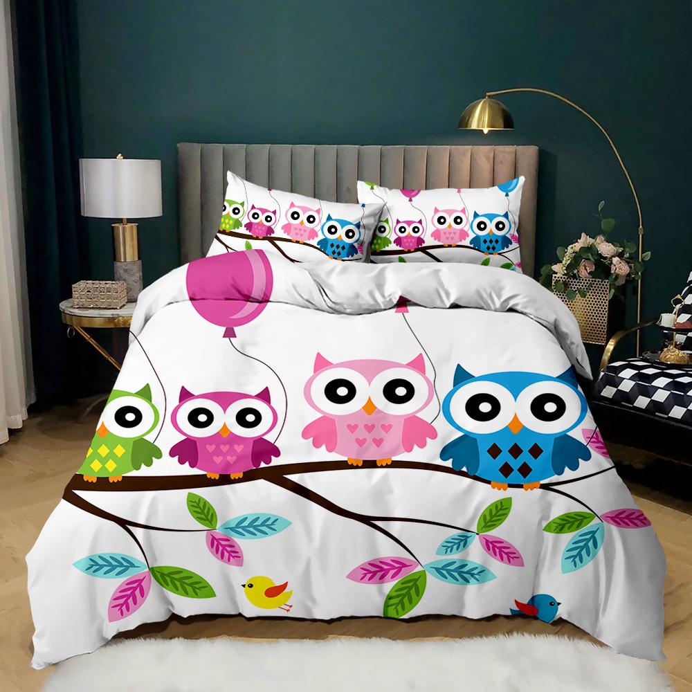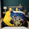 Eulen Bettwäsche Set King Size Niedliche Eule und Sterne Dekor Bettbezug Weltall Bettbezug Kinder Jungen Mädchen Polyester Steppdeckenbezug