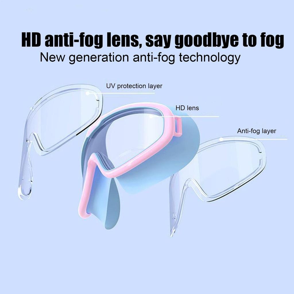 Schwimmbrille für draußen, großes Gestell, wasserdicht, beschlagfrei, UV-Schutz, mit Ohrschützern für 3-15 Jahre