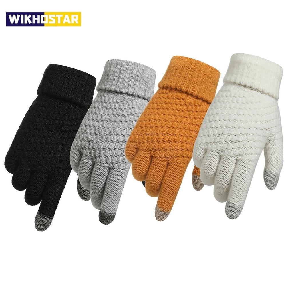 Frauen Männer Warme Winter Touchscreen Handschuhe Stretch Strick Fäustlinge Wolle Vollfinger Guantes Weibliche Häkeln Handschuh